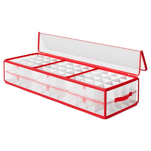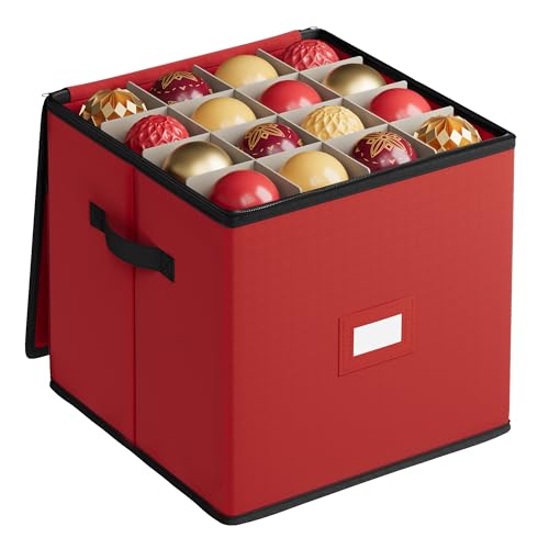 ZOBER Premium Christmas Bauble Storage Box With Dividers 64Compartment Xmas Ornament Container with Zippered Closure Designed for Delicate
