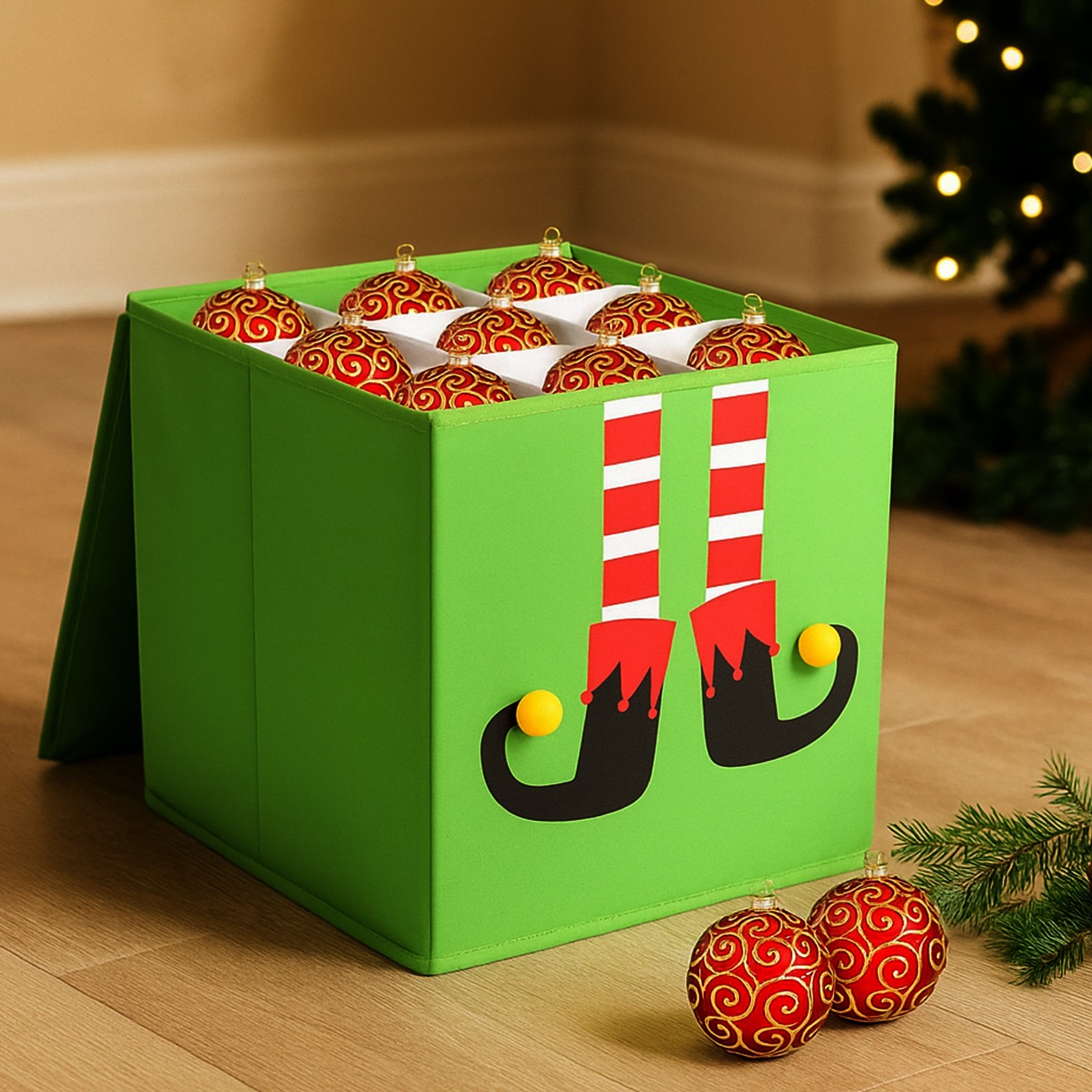 ELF CHRISTMAS BAUBLE STORAGE BOX BALLS ORNAMENT FOLDABLE STORAGE ORGANIZER