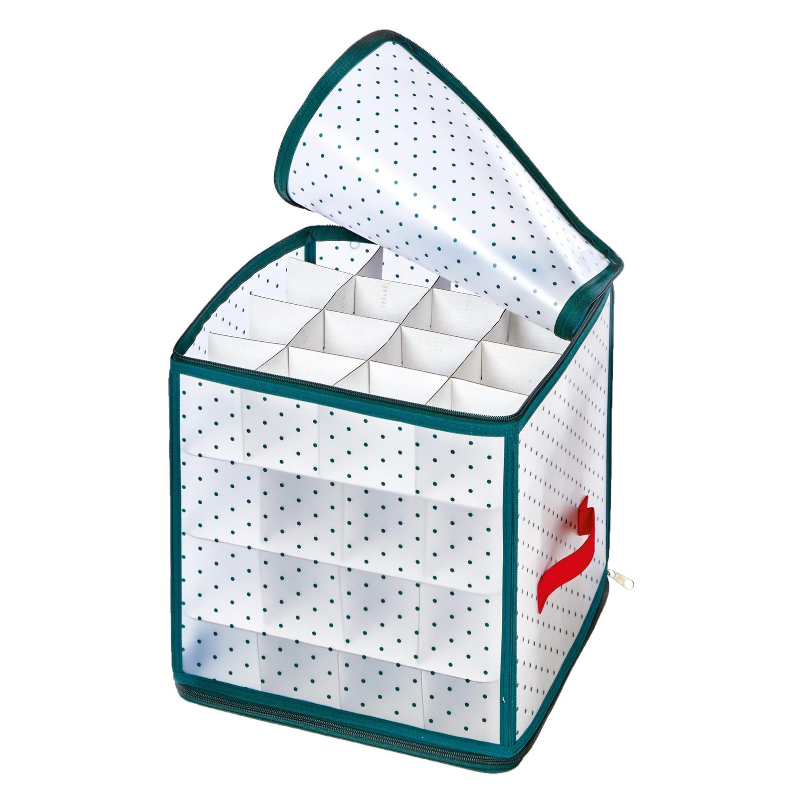 Christmas Storage Box For Bauble Decorations with Dividers, Handles, Zip Close