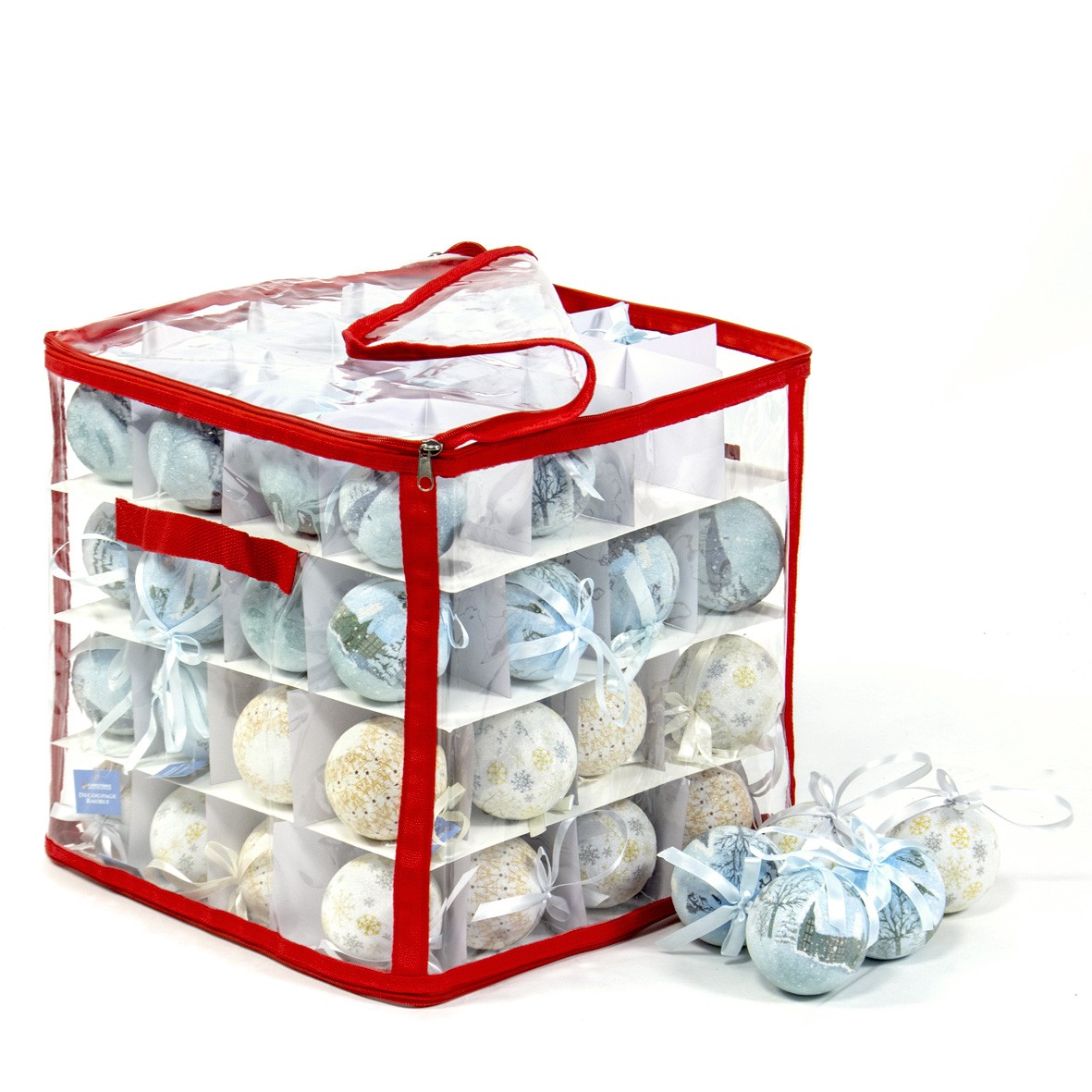 64 Christmas Bauble Storage Box with Adjustable Dividers and Zippered Closure –