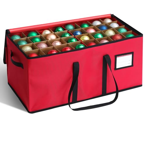 LPQKCcY Christmas Bauble Storage Box, 64 Slots Christmas Decoration Storage Xmas Tree Ornaments Organiser with Separators, Zipped Lid and Carry Handles - Tear Proof Non-Woven(Red, 33 x 33 x 33 cm)