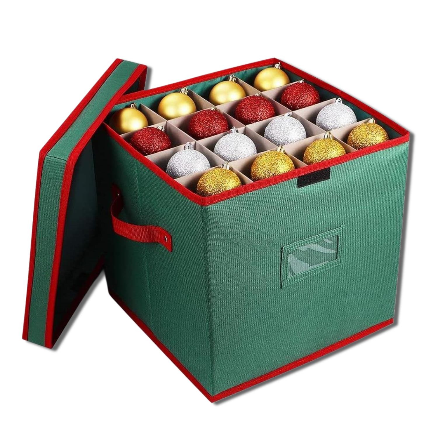Green Christmas Bauble Storage Box Organiser 64 Xmas Ornaments Balls Decoration