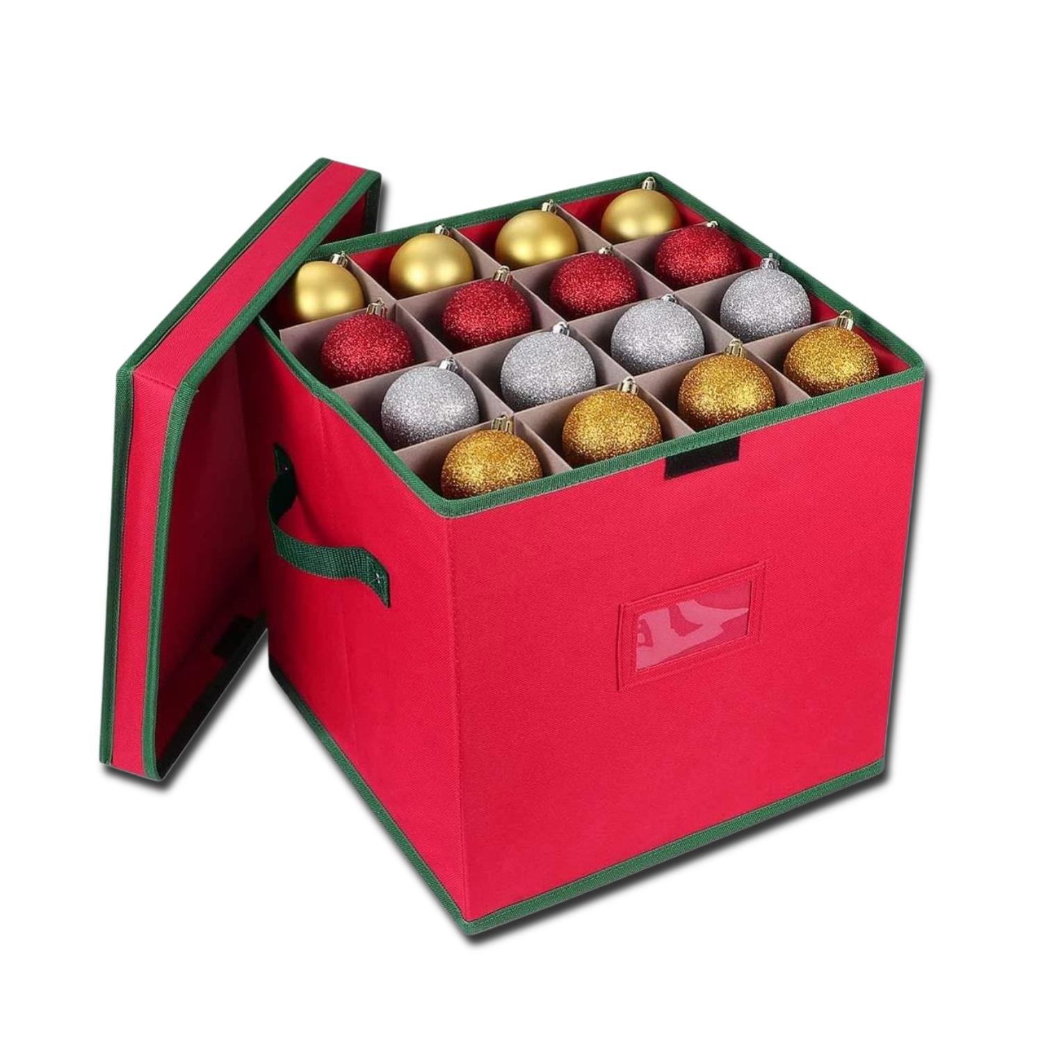 Premium Christmas Bauble Storage Box with Dividers - 64-Compartment Xmas Orname