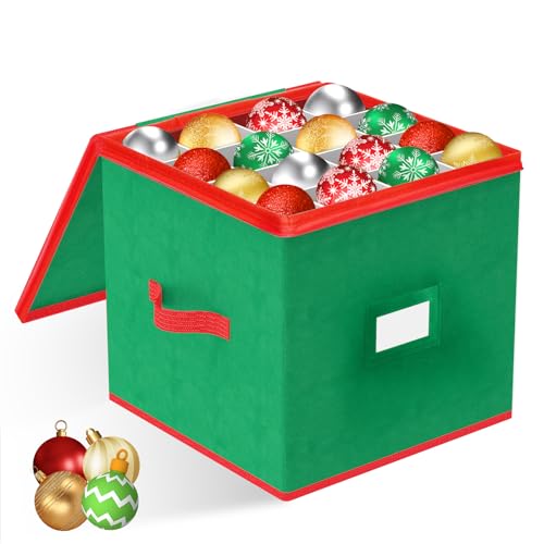 LPQKCcY Christmas Bauble Storage Box, 64 Slots Christmas Decoration Storage Xmas Tree Ornaments Organiser with Separators, Zipped Lid and Carry Handles - Tear Proof Non-Woven (Green, 33 x 33 x 33 cm)