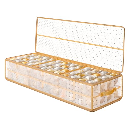 SONGMICS Christmas Ornament Storage Box, 96 Slots of 7.6 cm, 96.5 x 33.5 x 17.5 cm, Bauble Storage Box with Dividers, Zippers, Side Handles, Under the Bed, Sandy Gold RFB031A01