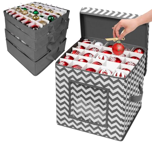 MaidMAX Christmas Bauble Storage Box with Adjustable Dividers, Christmas Tree Bauble Decorations Storage Bag, 4 Tier Organisers Removable with Handles, 64 Bauble Box Storage Bags,12.9 x 12.9 x 13.5''