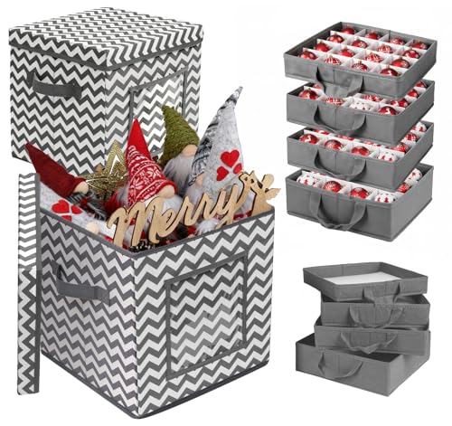 Christmas Bauble Storage Box with Trays, Anstore Stackable Xmas Bauble Storage Box Set with Lids, 4 Tier Xmas Decoration Organiser with Dividers, 83pcs Ornament Organiser with Carry Handles 30*31*31cm