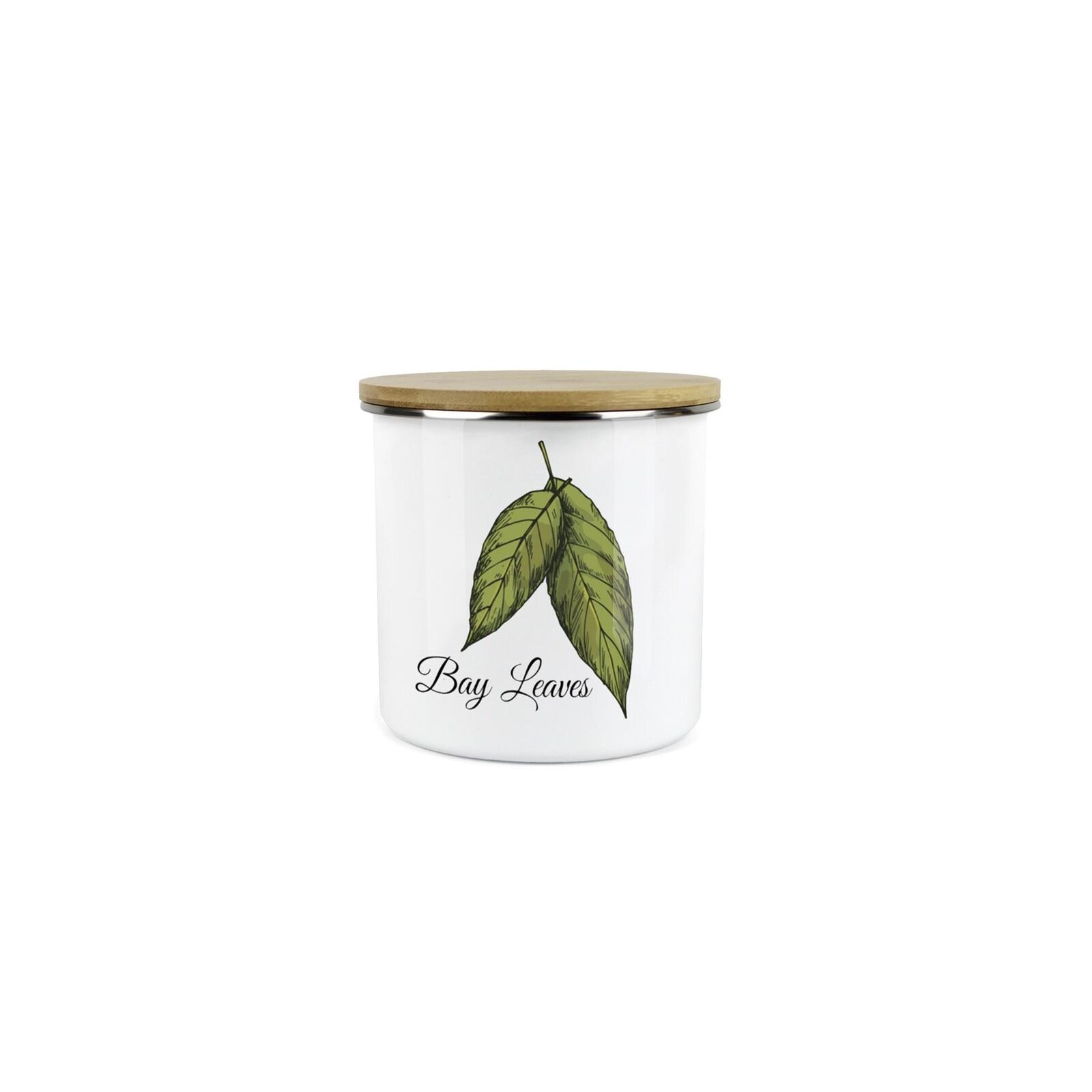 Herb Storage Jar - Enamel Mini Bay Leaves Canister - Kitchen Storage Container