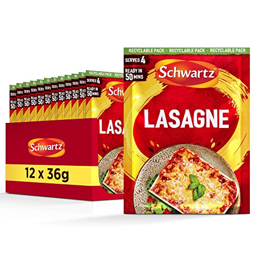 Schwartz Lasagne Recipe Mix 36 G | Serves 4 | Pack of 12 | Rustic Italian Dish | With Sweet Garlic, Fragrant Bay Leaves, Basil and Oregano | Quick and Easy Preparation | Suitable for Vegans