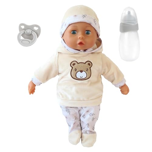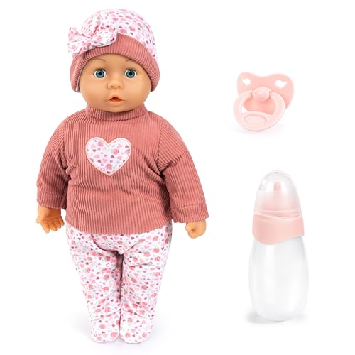 Bayer Design 93824DB Interactive baby doll, talking, soft body, sleeping eyes, cute outfit, dummy, bottle, 38 cm