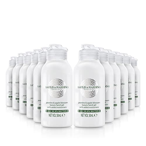 Baylis & Harding Jasmine and Apple Blossom Anti Bacterial Hand Sanitiser Gel, 50 ml, (Pack of 12) - Vegan Friendly
