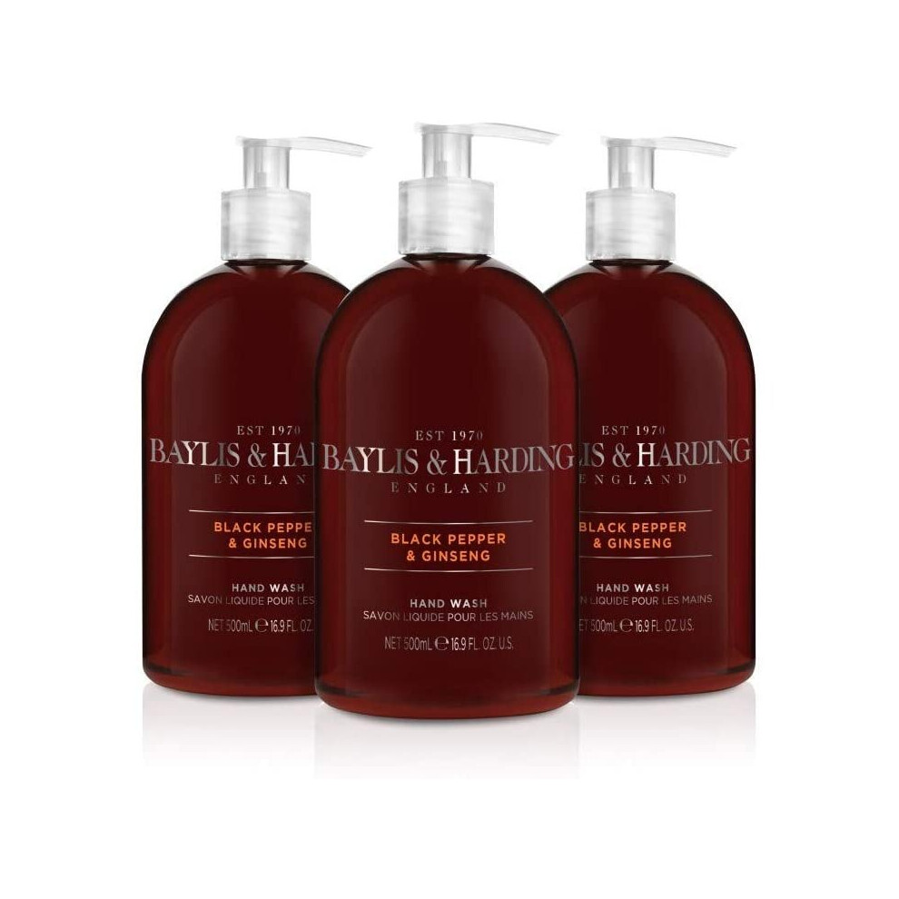 Baylis & Harding Black Pepper and Ginseng Hand Wash, 500 ml (Pack of 3) - Vegan Friendly