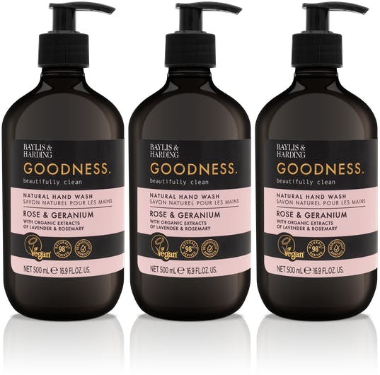 Baylis & Harding Goodness Rose & Geranium, 500Ml Hand Wash, Pack of 3 - Vegan F