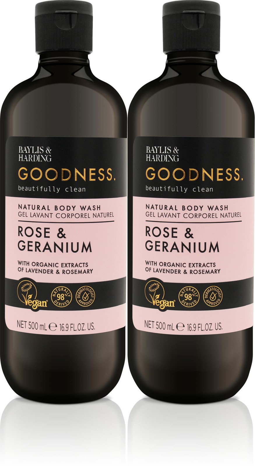 Baylis & Harding Goodness Rose & Geranium Body Wash 500ml X 2