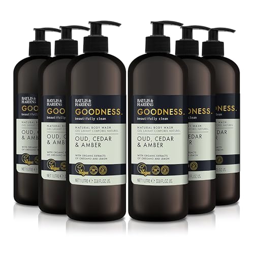 Baylis & Harding Goodness Oud, Cedar & Amber Body Wash, 1 Litre (Pack of 6) - Vegan Friendly