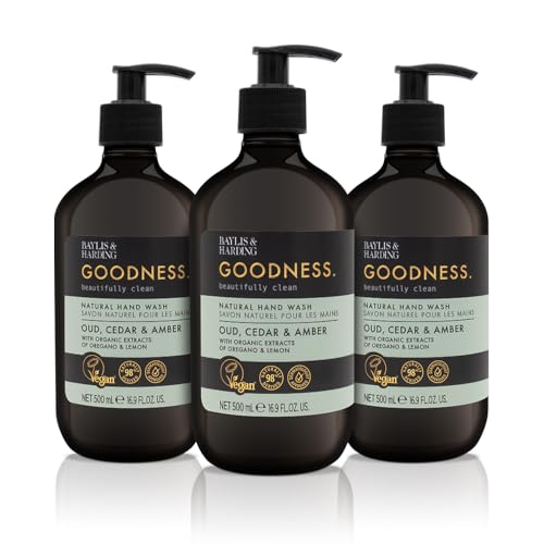 Baylis & Harding Goodness Oud, Cedar & Amber Natural Hand Wash, 500 ml (Pack of 3) - Vegan Friendly