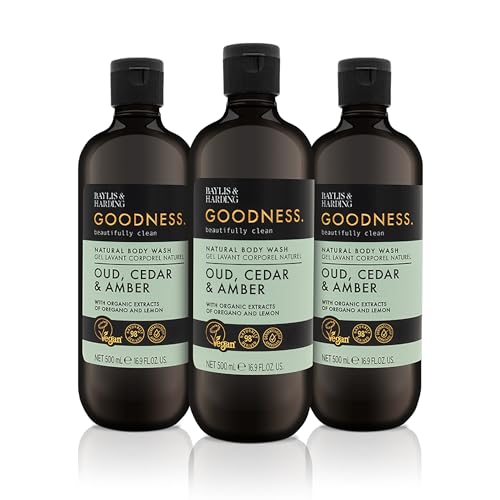 Baylis & Harding Goodness Oud, Cedar and Amber Body Wash, 500 ml (Pack of 3) - Vegan Friendly