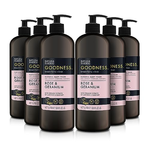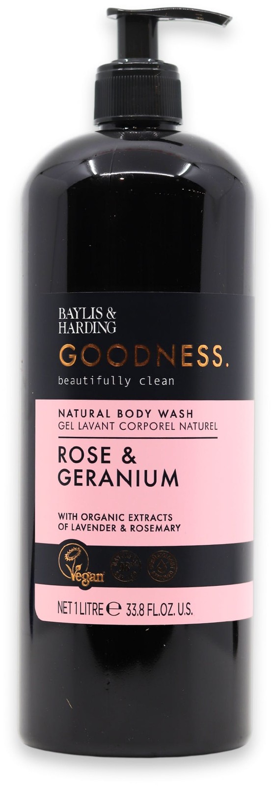 Baylis & Harding Goodness Rose & Geranium Natural Body Wash 1 Litre (Pack of 6) - Vegan Friendly