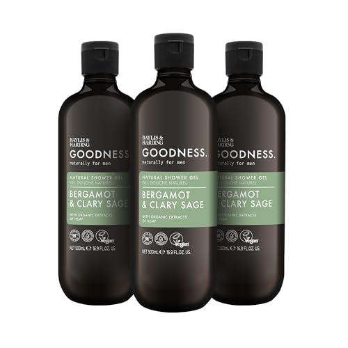 Baylis & Harding Goodness Men's Bergamot & Clary Sage Natural Shower Gel, 500 ml (Pack Of 3) - Vegan Friendly
