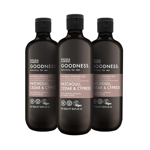Baylis & Harding Goodness Men's Patchouli, Cedar & Cypress Natural Shower Gel, 500 ml (Pack Of 3) - Vegan Friendly
