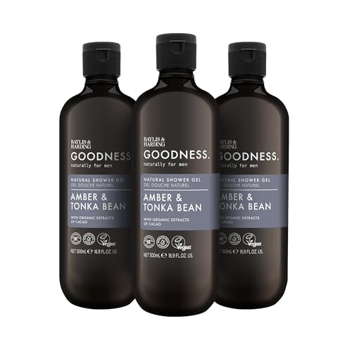 Baylis & Harding Goodness Men's Amber & Tonka Bean Natural Shower Gel, 500 ml (Pack Of 3) - Vegan Friendly