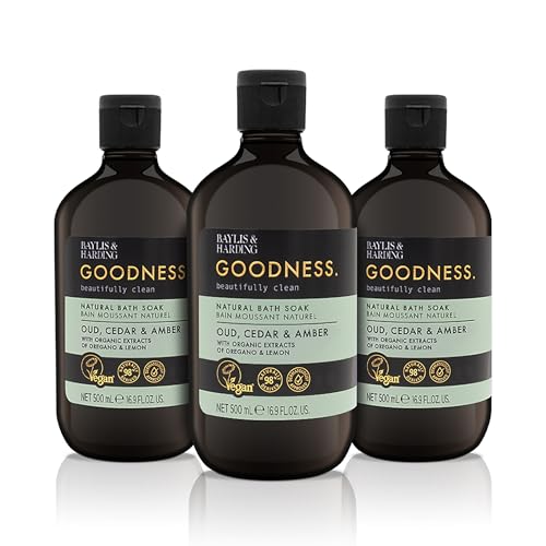 Baylis & Harding Goodness Oud, Cedar & Amber Bath Soak, 500 ml (Pack of 3) - Vegan Friendly