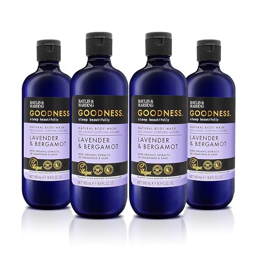 Baylis & Harding Goodness Sleep Lavender & Bergamot Sleep Body Wash, 500ml (Pack of 4) - Vegan Friendly