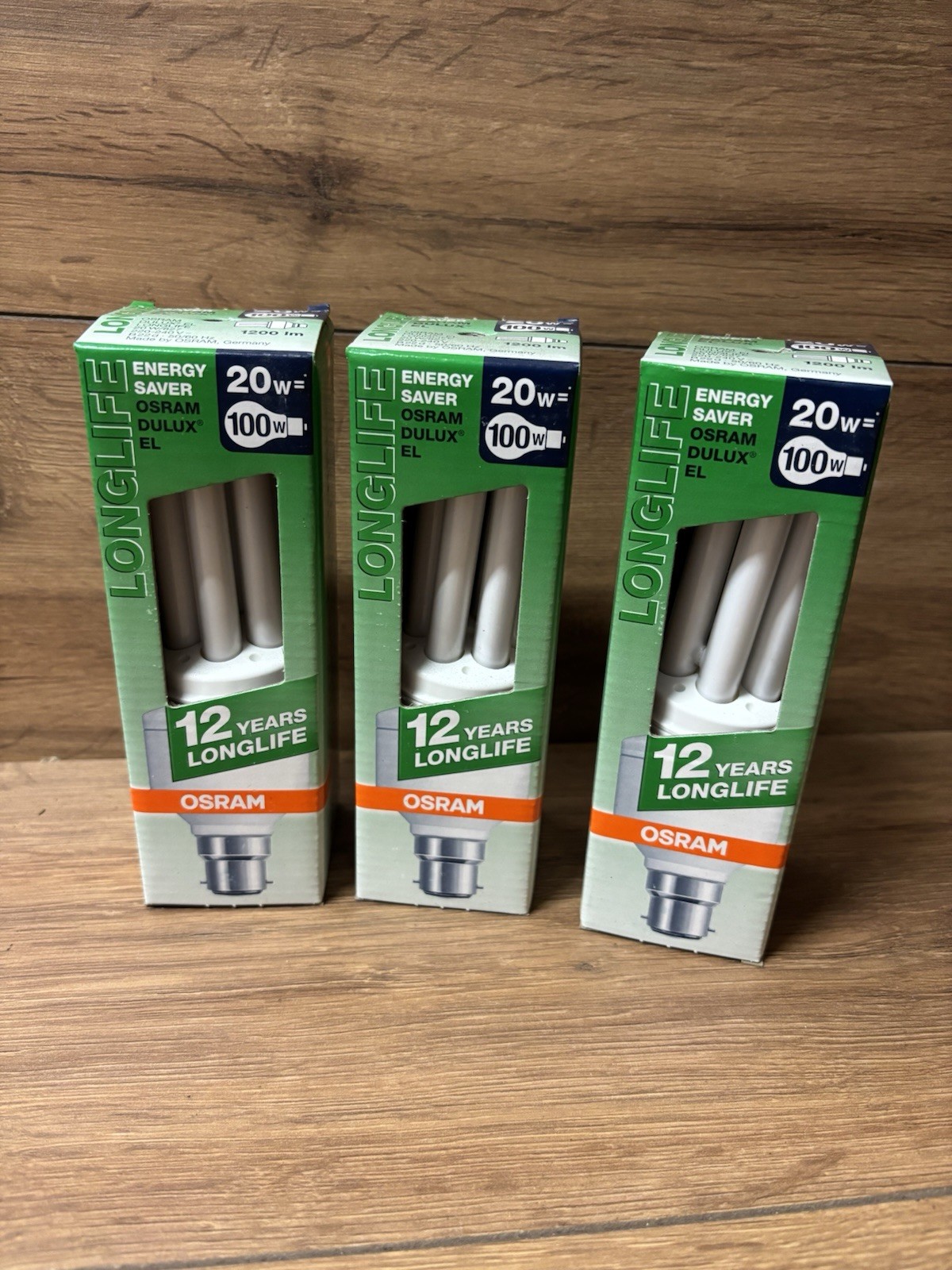 3 x Osram Dulux EL 20W 100W equivalent Energy Saver Light Bulbs Bayonet sh72