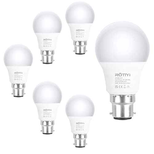 ROTTYI B22 Bayonet Light Bulbs 60W Equivalent, Cool White 6500K Daylight Bulbs, 8W 880LM LED Bulb, BC A60 GLS Energy Saving Lightbulbs, Classic Shape Non-dimmable, Pack of 6