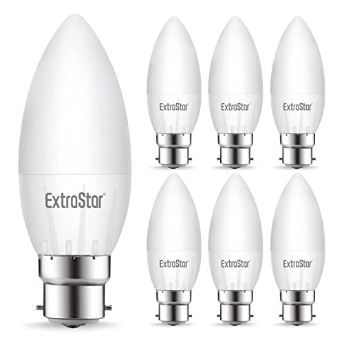EXTRASTAR 4.9W B22 LED Bayonet Cap Candle Bulbs C37 Light Bulb, 41W Equivalent, Warm White 3000K Energy Saving, 480LM, Non-Dimmable, Pack of 6