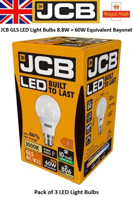 10 x 9W = 60W LED GLS Light Bulbs Bayonet BC B22 Warm White 60 Watt JCB