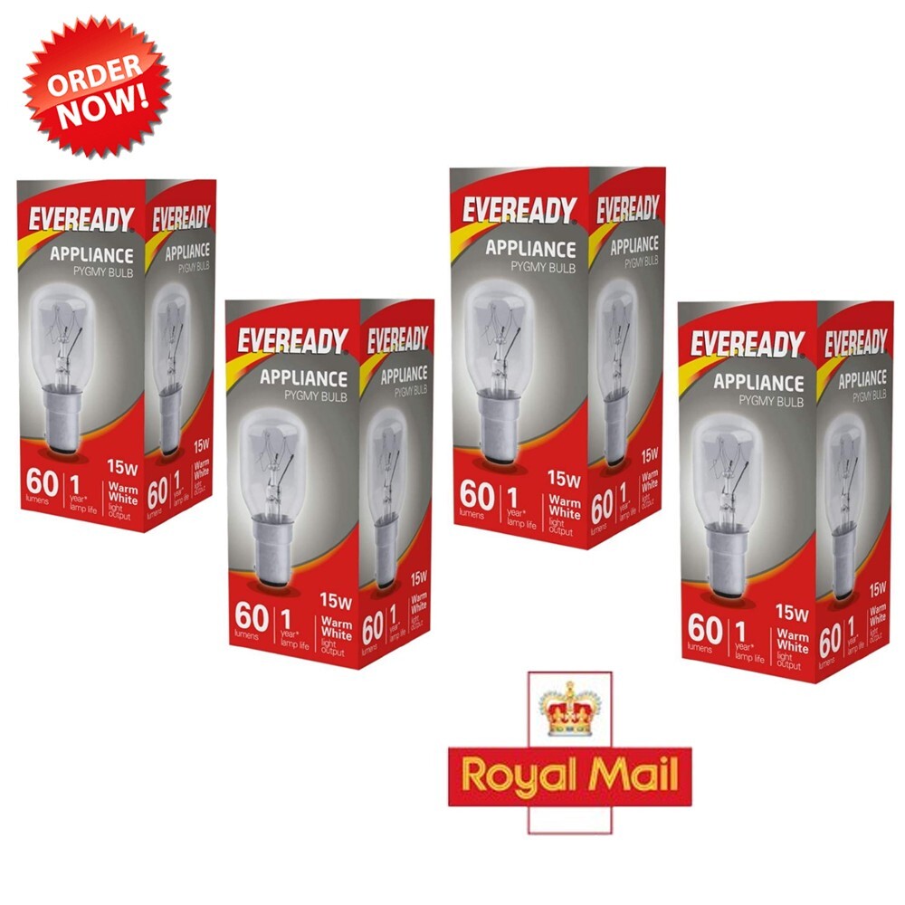 4x Eveready 15 watt Pygmy Incandescent Light Bulbs, Bayonet Cap / BC Eveready UK