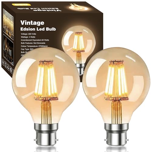 YOUDIAN Vintage Edison Bayonet Light Bulb,6W(60W Equivalent) G80 B22 LED Energy Saver Filament Bulbs Bayonet Cap,Amber Retro Style Decorative Light Bulb Warm White 2700K,220V,Pack of 2