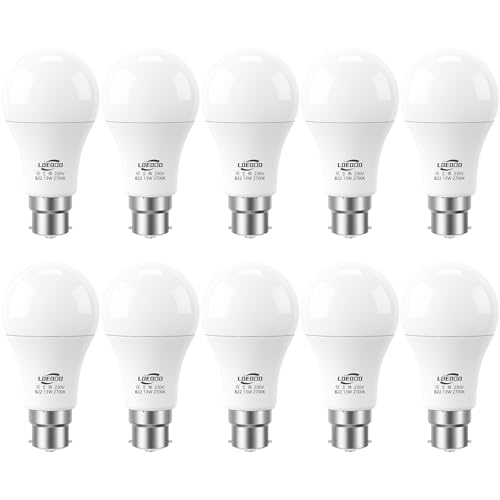 LOEODO 10-Pack Bayonet Light Bulbs 60W Equvialent, 9W 806 Lumens LED Bulb, Warm White 2700K, B22 Energy Saving Lightbulbs, Non-dimmable