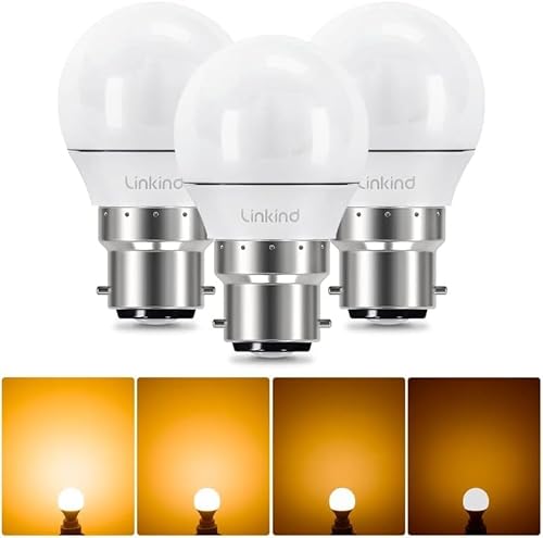 Linkind Dimmable B22 Bayonet LED Bulbs, 40w Equivalent, Warm White 2700k, 4.2W 470LM, Golf Ball B22d Energy Saving LED Light Bulbs, Pack of 3