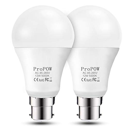 ProPOW Dusk to Dawn Light Bulb, 12W Bayonet Light Sensor Bulbs Daylight White 100W Equivalent Automatic Light Bulb Outdoor Lighting for Porch, Garage, Driveway,Yard,Hallway(B22, 2-Pack)