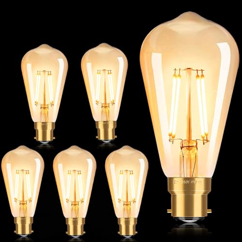 FASUTY Dimmable Bayonet Light Bulbs Edison,Vintage LED Filament Bulb B22,ST64 Amber Glass CRI 90+ Decorative Bulbs,No Flicker Retro Antique Bulbs,4W(40W Equivalent) Warm White 2700K-6PACK