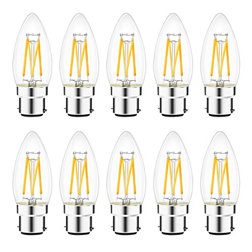 B4U Bayonet LED Light Bulbs, 10 Pack B22 Candle, Dimmable Warm White, Clear 40W 230V Equivalent