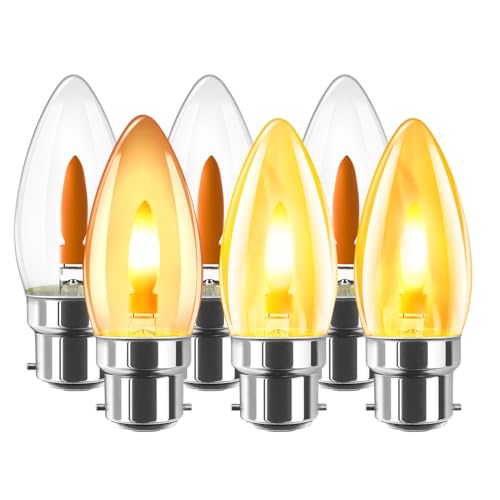 LVWIT Flickering Bulbs Bayonet,B22 Vintage Fire Flickering Chandelier Candle Light Bulbs,1800K Warm White LED Flame Light Bulbs,Orange Flicker Bulbs for Daily Decoration(6 PCS,2 Mode seting)