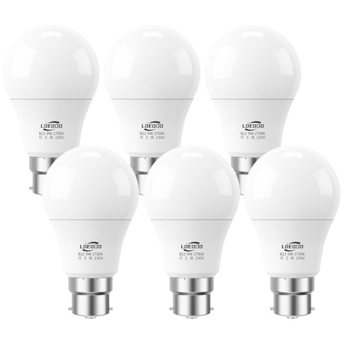 LOEODO Bayonet Light Bulbs 60W Equvialent, 9W 806 Lumens LED Bulb, Warm White 2700K, B22 Energy Saving Lightbulbs, Non-dimmable, Pack of 6