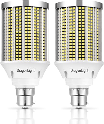 DragonLight 2024 Newest 40W Super Bright LED Corn Light Bulbs(300 Watt Equivalent) - B22 Bayonet Cap LED Bulbs - 6000K Daylight 4800 Lumens for Large Area Lighting [Twin Value Pack]