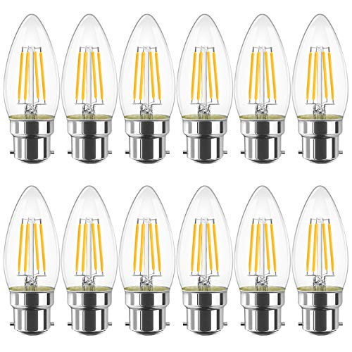 LVWIT B22 LED Filament Candle Bulb, C35 Bayonet Light Bulbs,470Lm, 4W Replace 40Watt,2700K Warm White Candle Bulbs for Chandeliers Fittings Non-Dimmable (12 PCS)