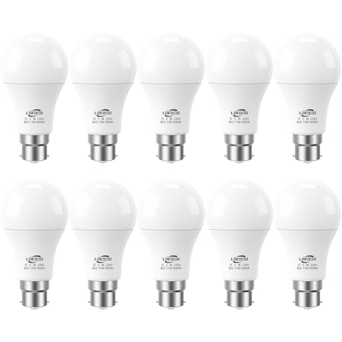 LOEODO B22 Bayonet LED Bulbs 100W Equivalent, 13W Light Bulb, 1200 Lumens, 6000K Cool White, A60 Energy Saving Lightbulbsb, Non-Dimmable, Pack of 10
