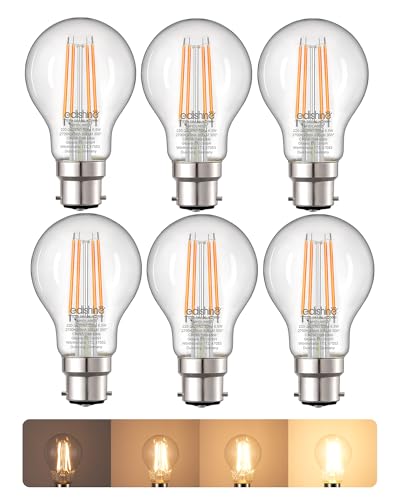 EDISHINE 6 Pack Bayonet Light Bulbs, 6.5W B22 LED Bulbs Dimmable, 2700K Warm White 806LM, GLS Energy Saving Light, B22 Base LED Filament Bulb for Home and Commercial Use