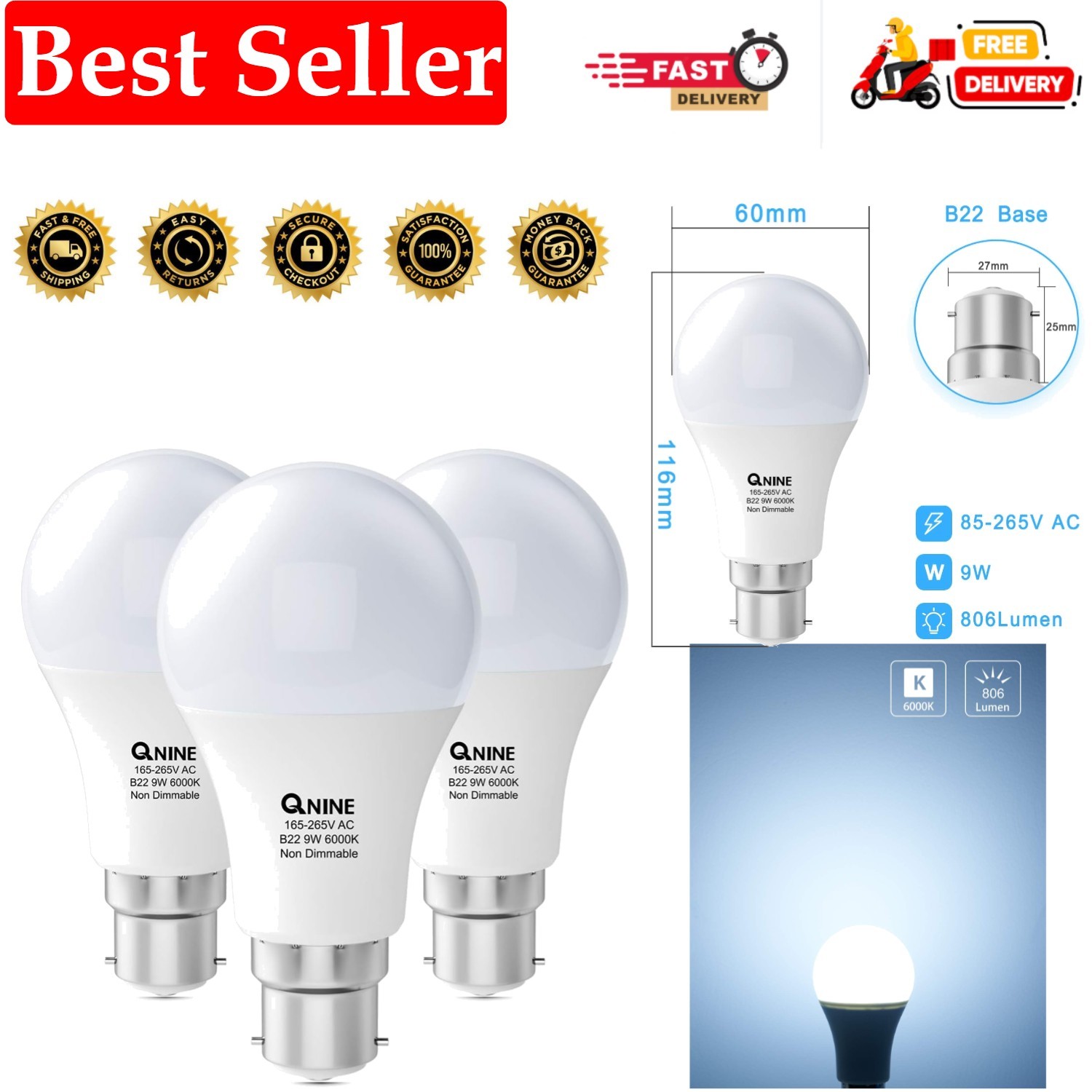 Cool White Bayonet Light Bulbs, 9W 60W Equivalent, 806lm, 6000K, B22 LED Bulb...