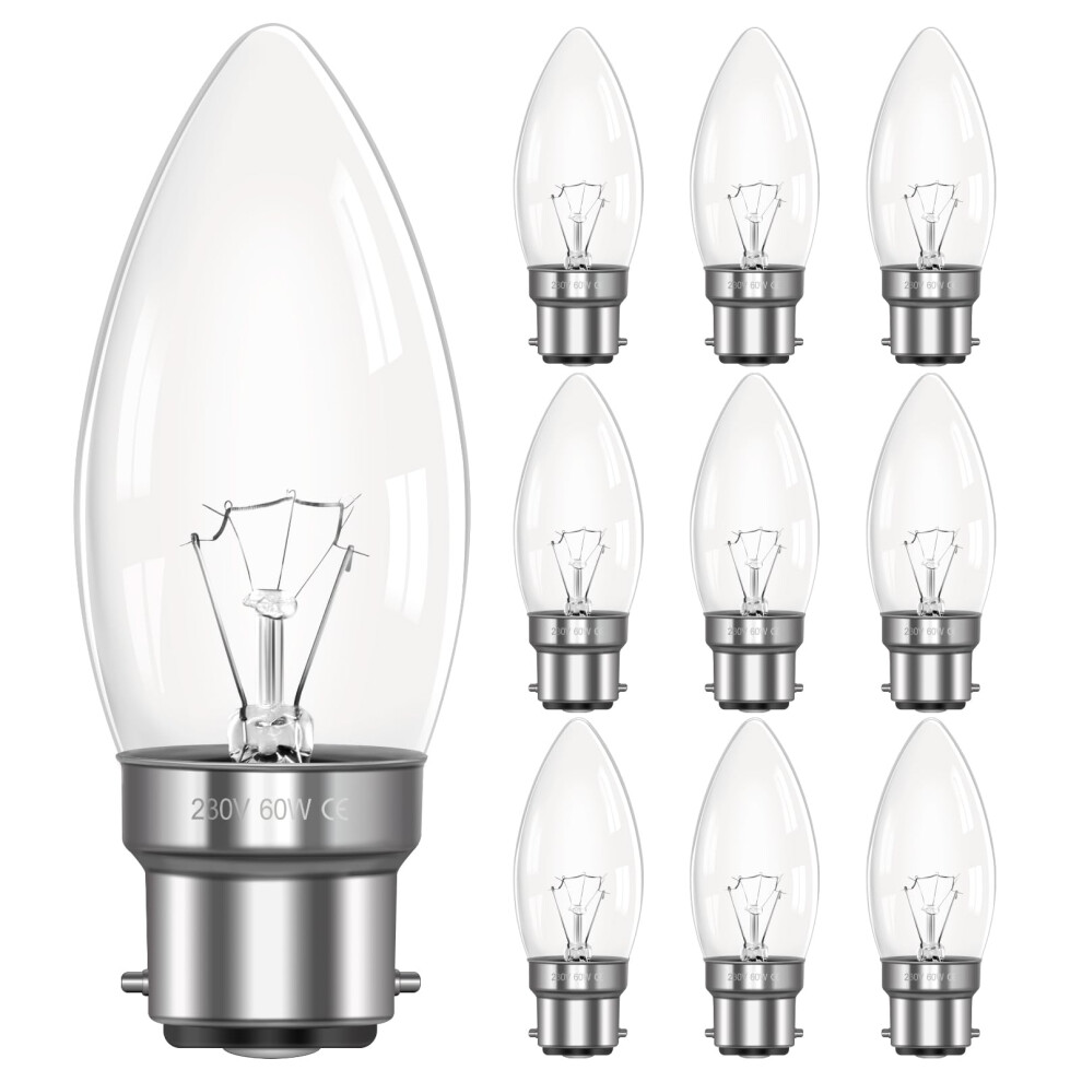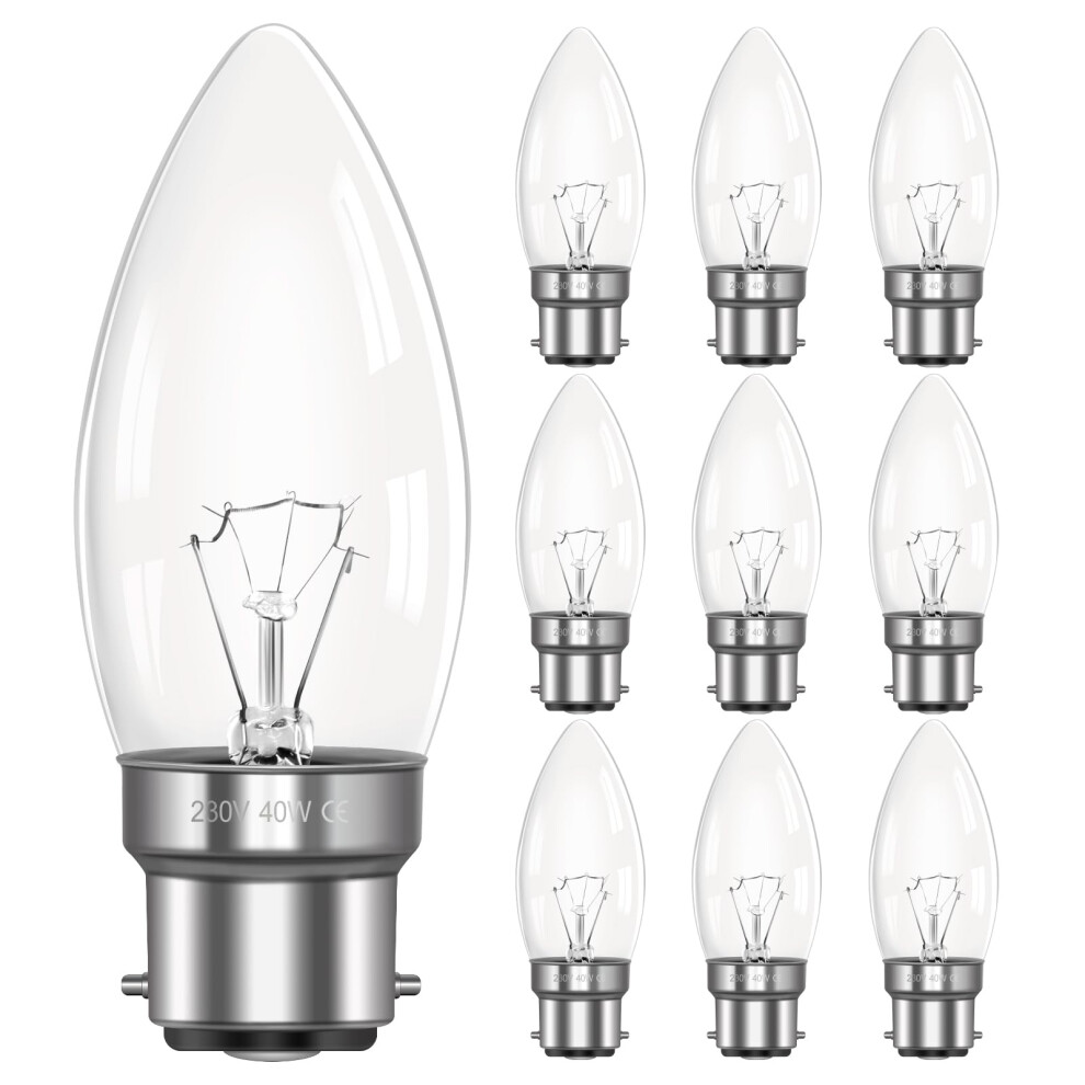 Liuyife B22 C35 Candle Light Bulb 28W, Dimmable, B22 Bayonet Cap Candle Bulb, Warm White 2700K 350LM, Clear Glass, C35 Light Bulb for Chandelier, Tab