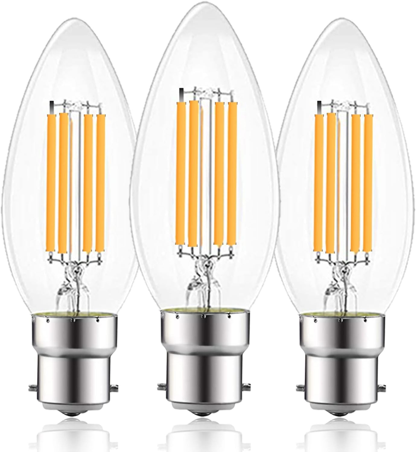 EXTRASTAR 6W C35 B22 LED Filament Candle Light Bulbs, Bayonet Cap Candle Bulb,