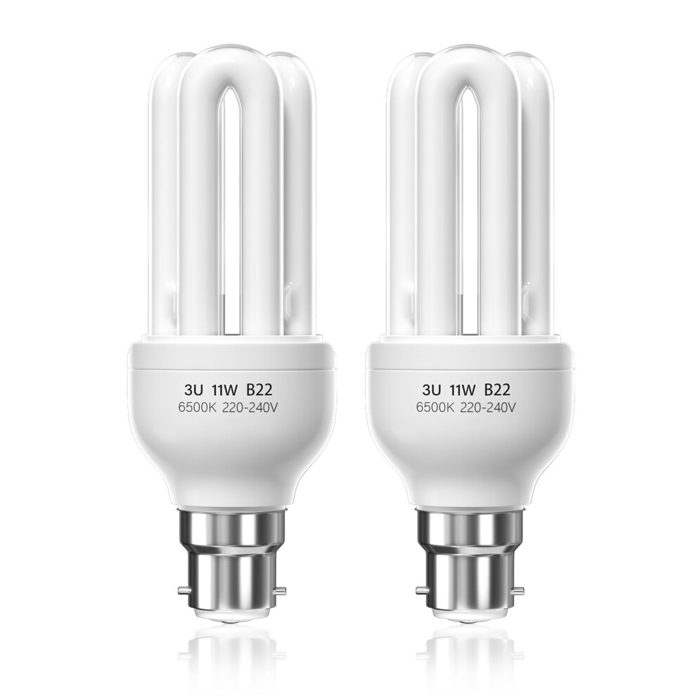 B22 Bayonet Cap Energy Saving Bulb 11W, 2U CFL Low Energy Light Bulbs, BC Compac