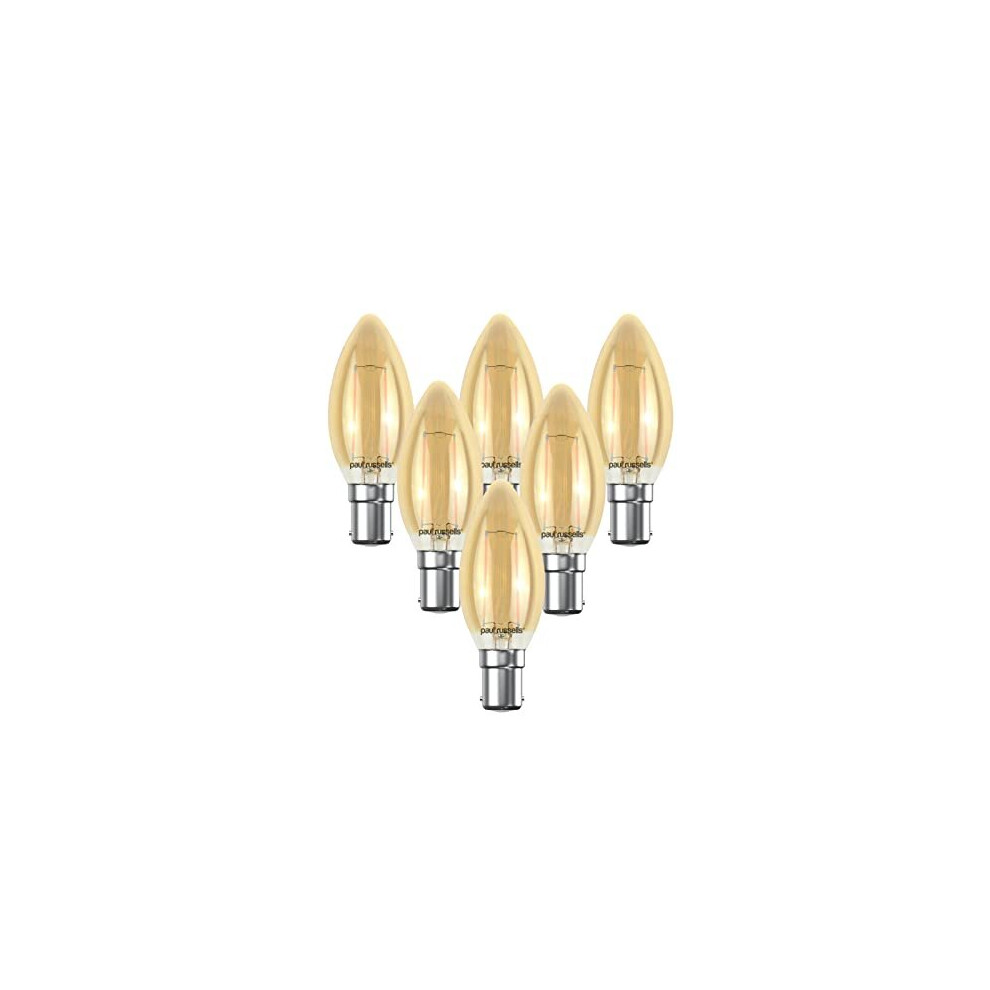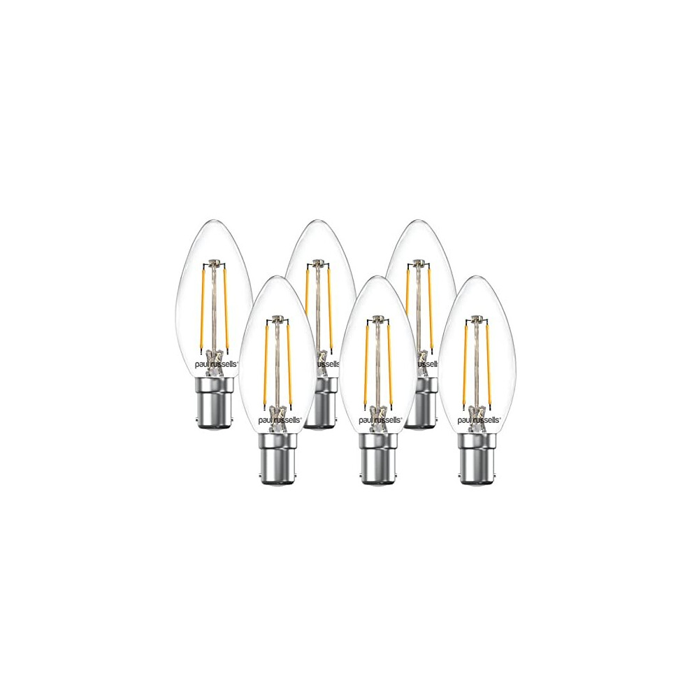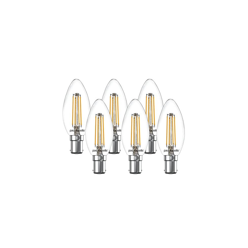 paul russells LED Candle Filament Bulbs - Pack of 6 â 2.5W 20W Equivalent 200LM Lumen 2200K SBC B15D Small Bayonet Cap C35 Bulb â Energy Saving