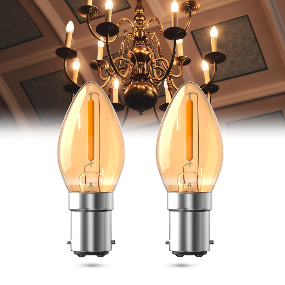 Luxvista 0.5W B15 Small Bayonet Candle Bulbs,C7 B15 LED Candle Bulb,2200K Amber Warm White Night Light Bulb,SBC Small Bayonet Cap Vintage LED Bulb fo